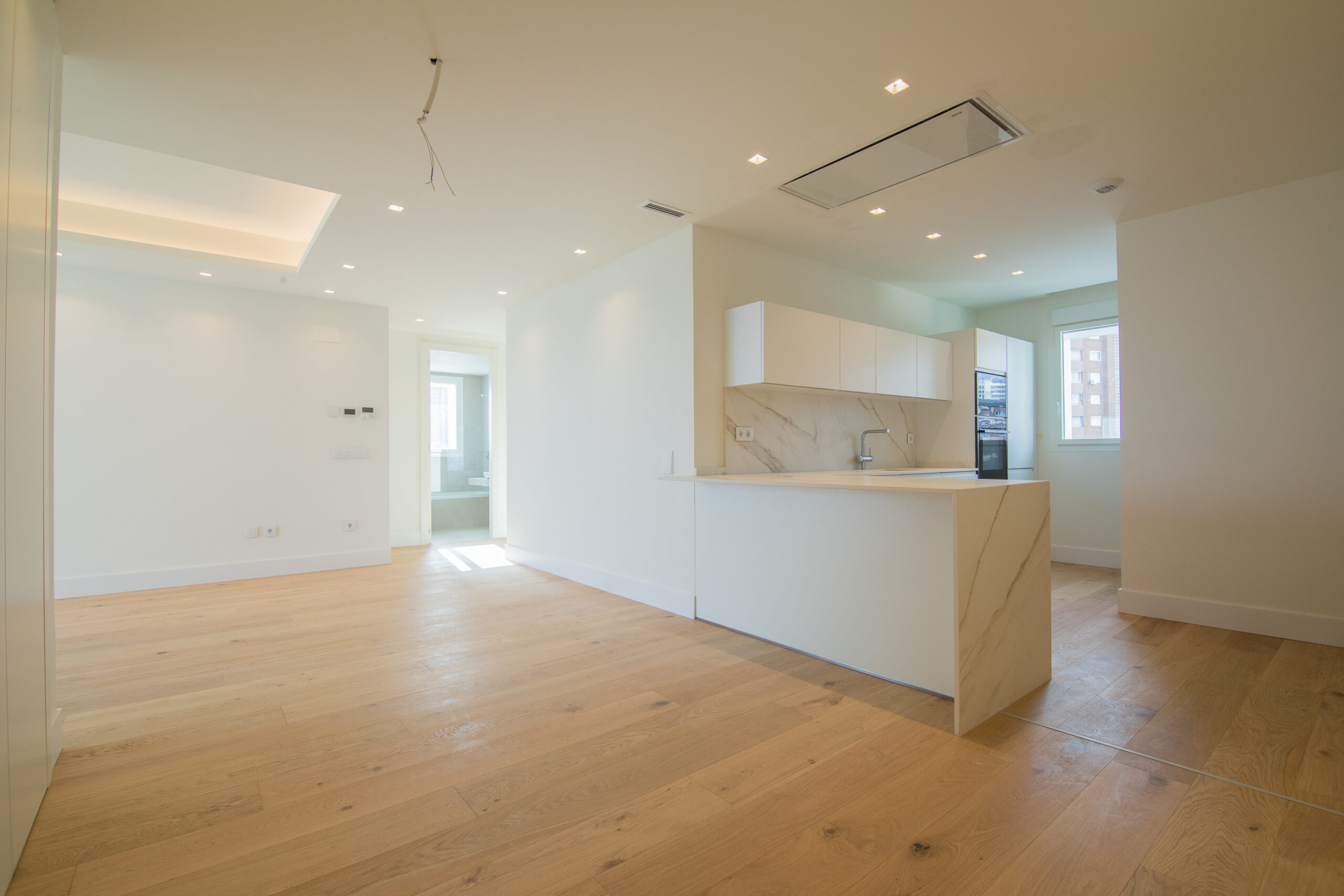 • Three-layer oak flooring and bathrooms with premium materials (Duravit and Grohe).