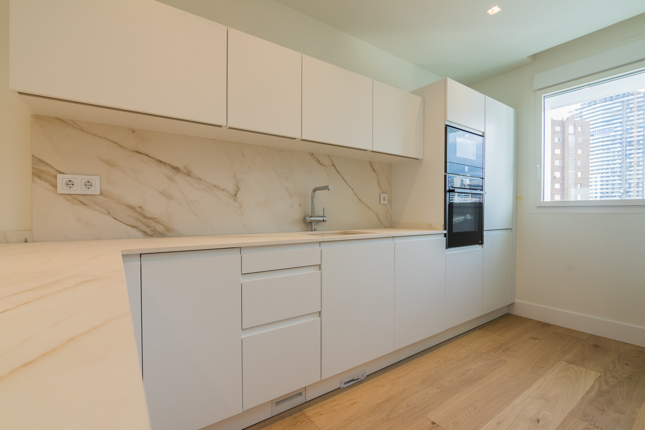 • Pavimentos de roble tricapa y baños con materiales premium (Duravit y Grohe).