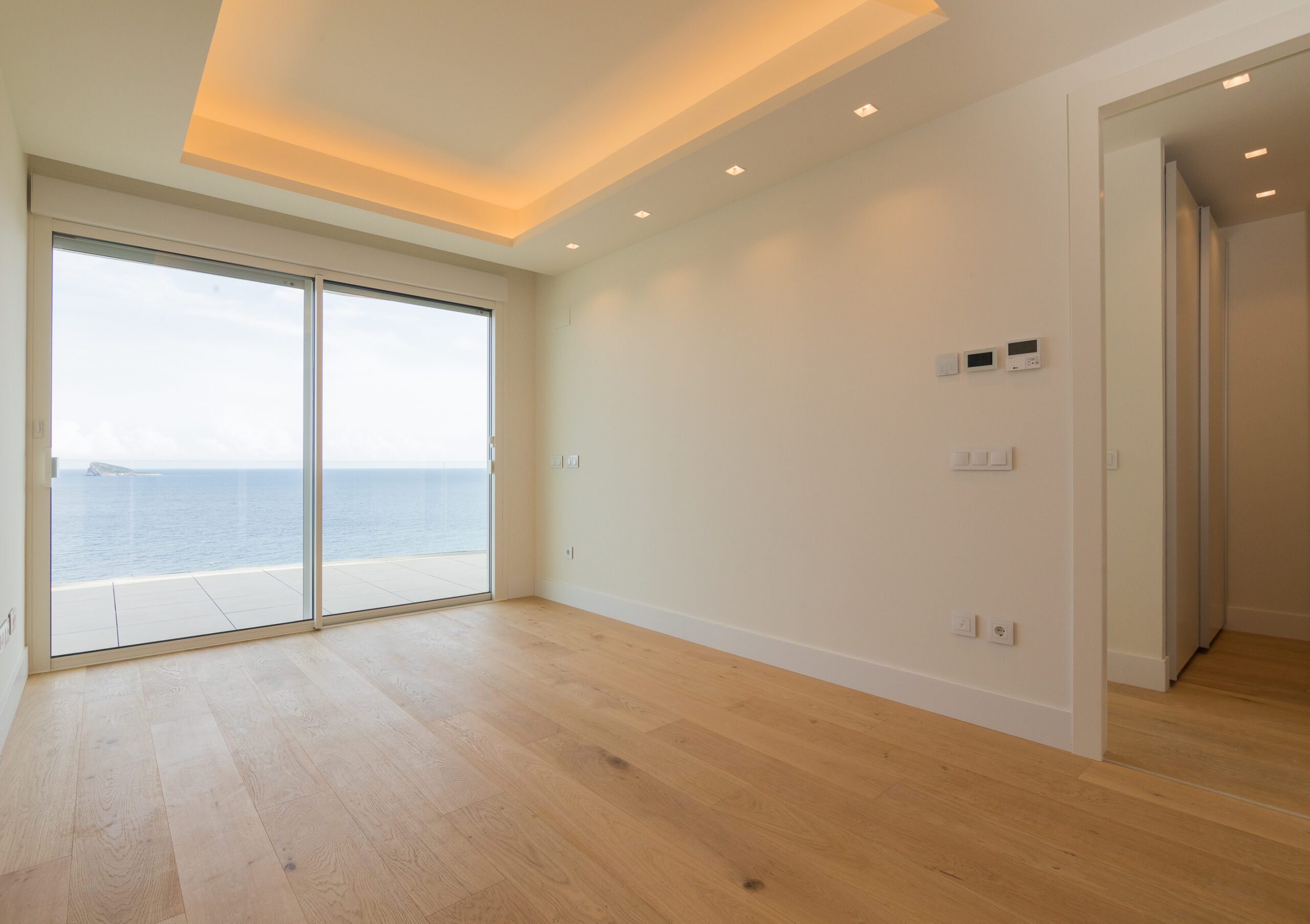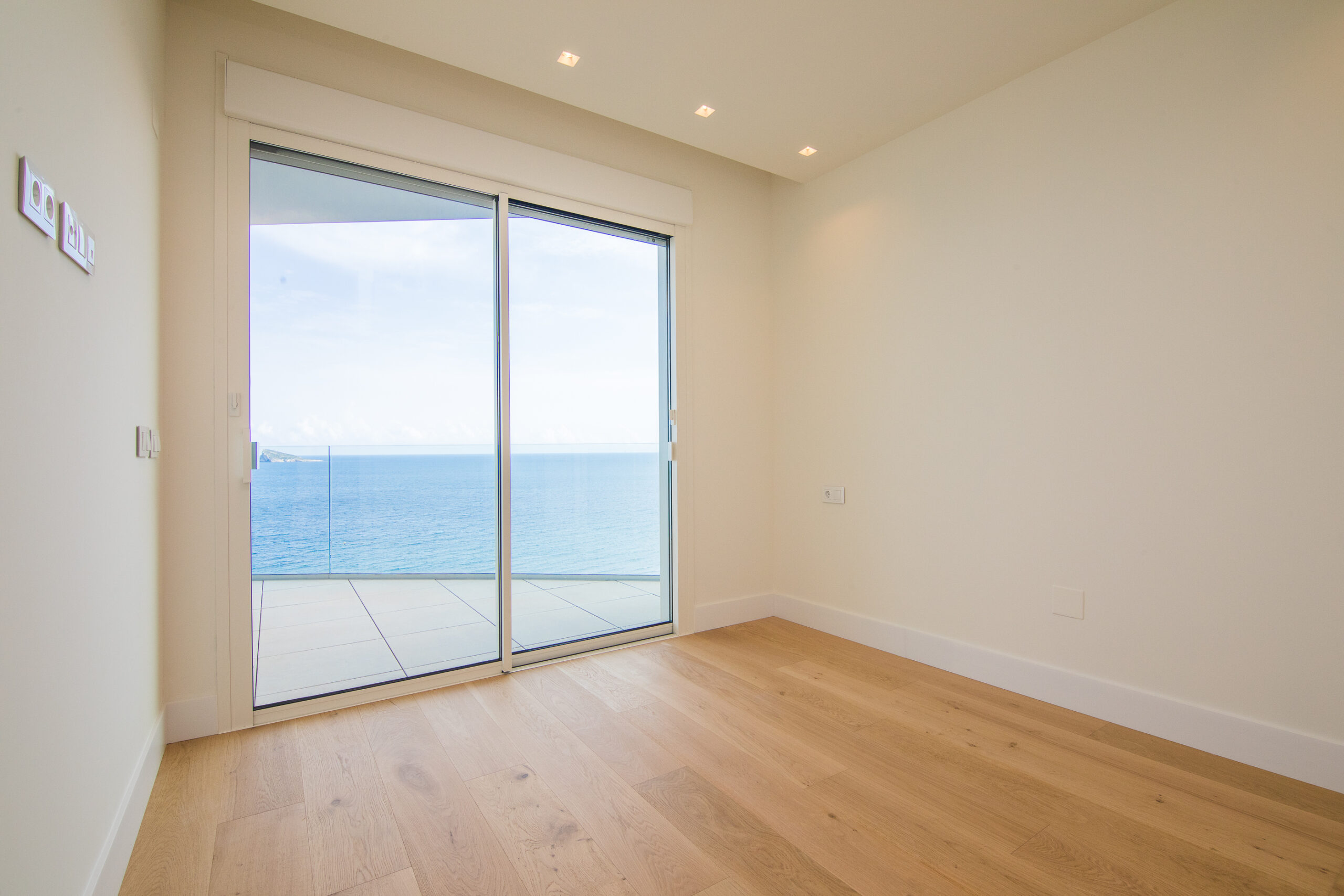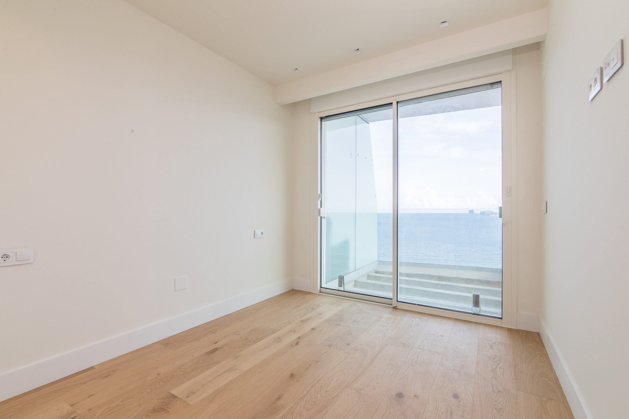 It has four bedrooms. The master bedroom allows you to wake up every morning to the endless blue of the horizon. It has an en suite bathroom and a dressing room. The other three bedrooms are spectacular doubles, one of them with an en suite bathroom; the other two bedrooms share a designer bathroom and a communal toilet, which serves the rest of the home. A dreamy layout.