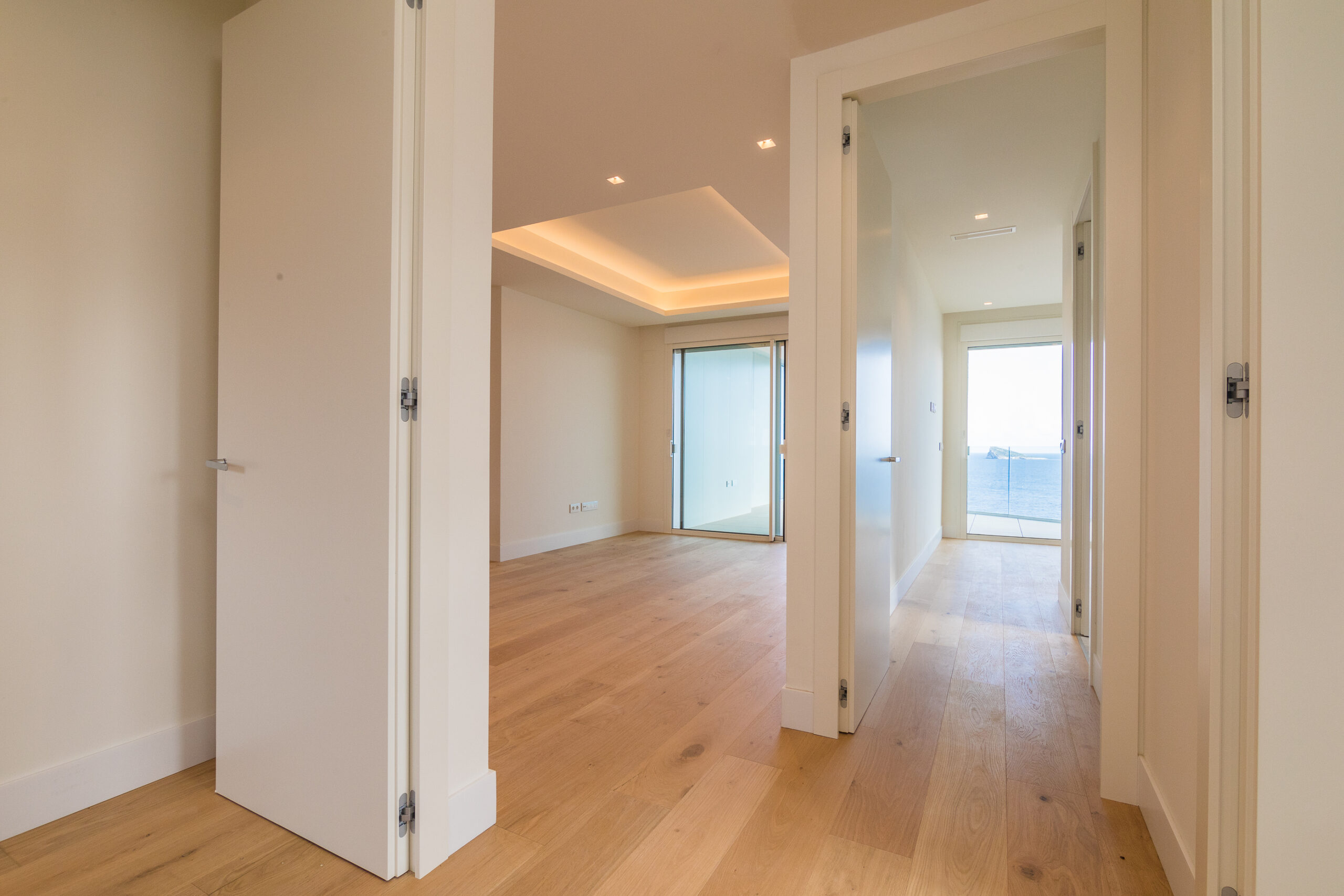 Cuenta con cuatro dormitorios. El principal le permite despertar cada mañana con el azul infinito del horizonte. Con baño en suite y un vestidor. Los otros dormitorios son tres espectaculares dobles, uno de ellos con baño en suite; los otros dos dormitorios comparten un baño de diseño y un aseo de uso comunitario, que da servicio al resto de la vivienda. Distribución de ensueño.