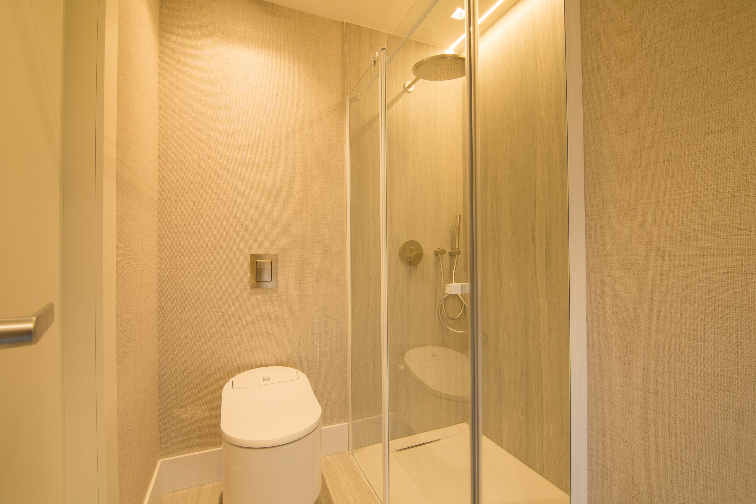 • Porcelain flooring in the bathroom and on the natural stone terrace with a non-slip finish.