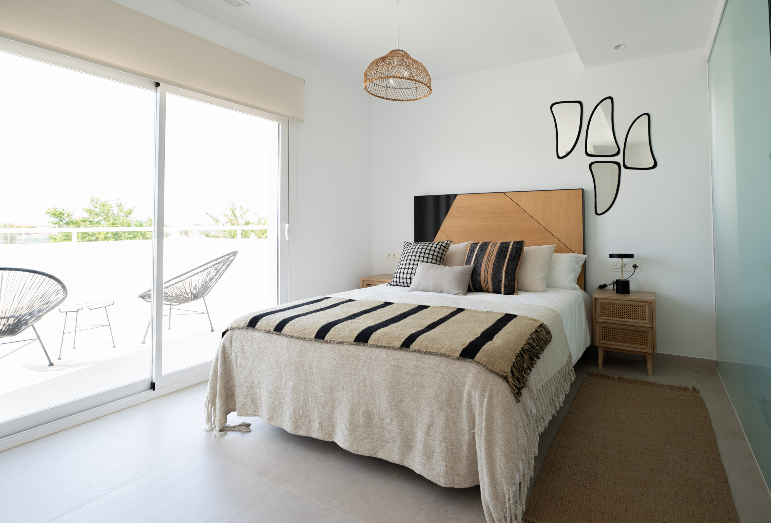 Desde el primer instante, la vivienda transmite una sensación de armonía, luz y bienestar. Los interiores han sido cuidadosamente decorados con un estilo mediterráneo contemporáneo, donde predominan los tonos neutros, materiales naturales y una estética cálida y sofisticada.