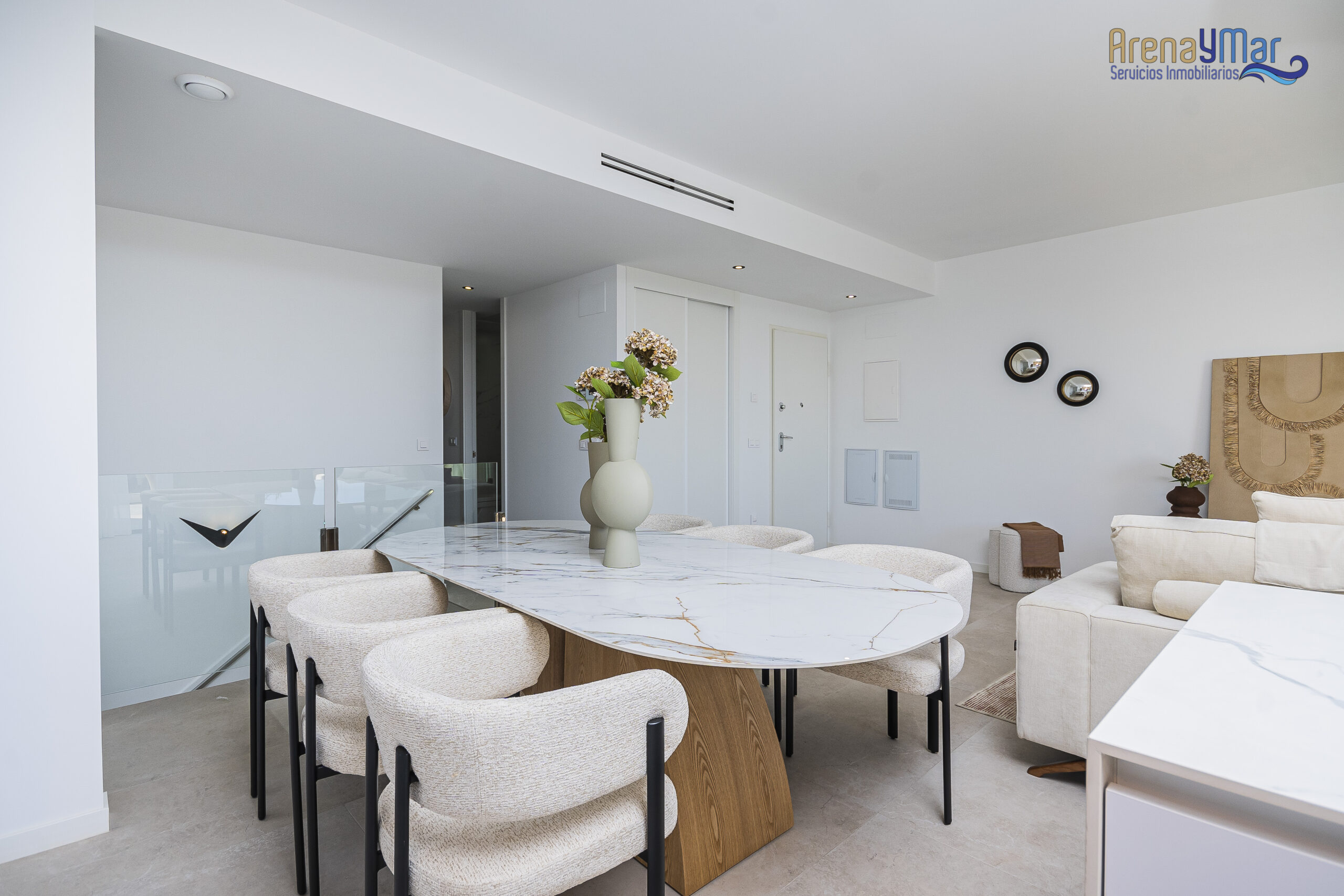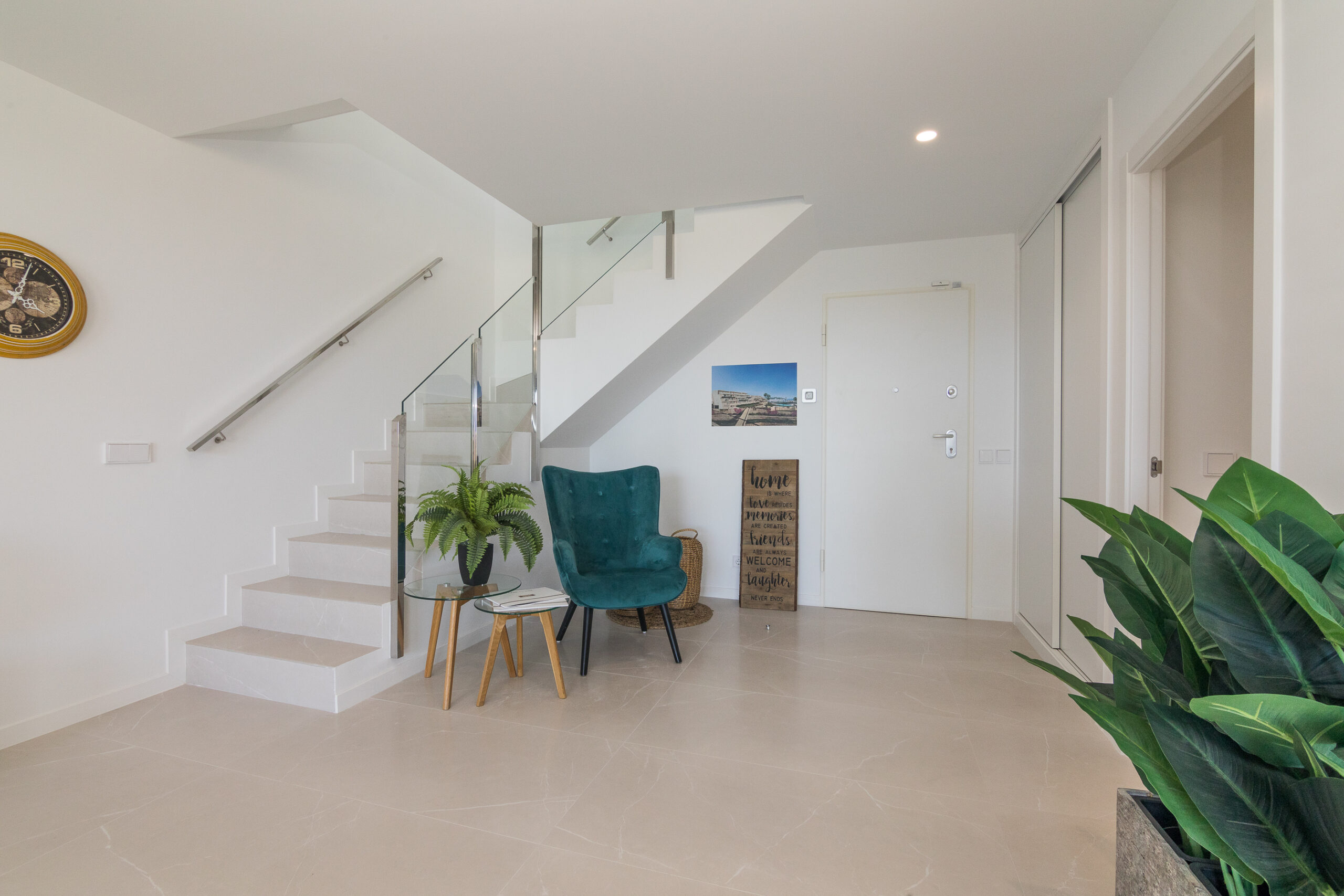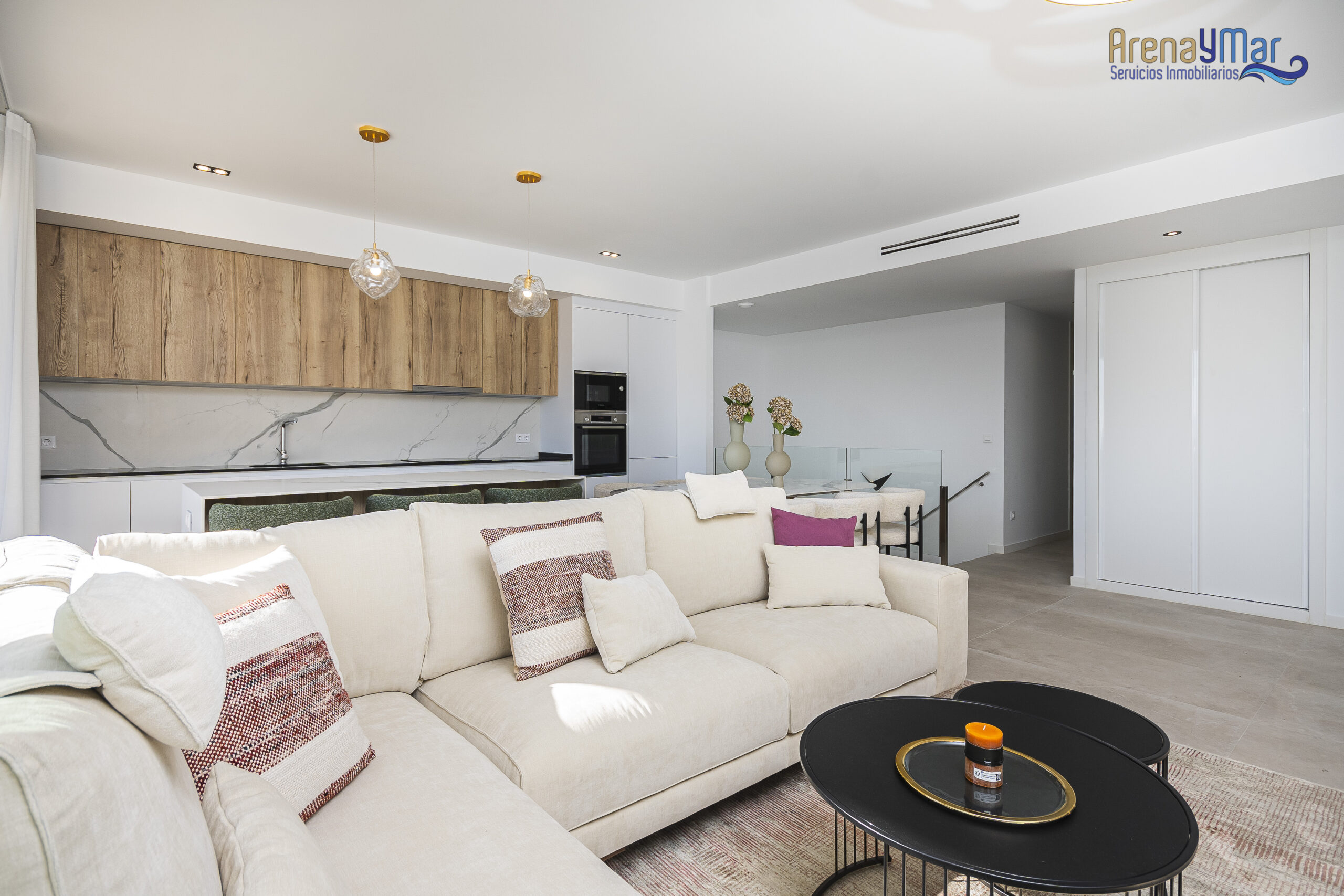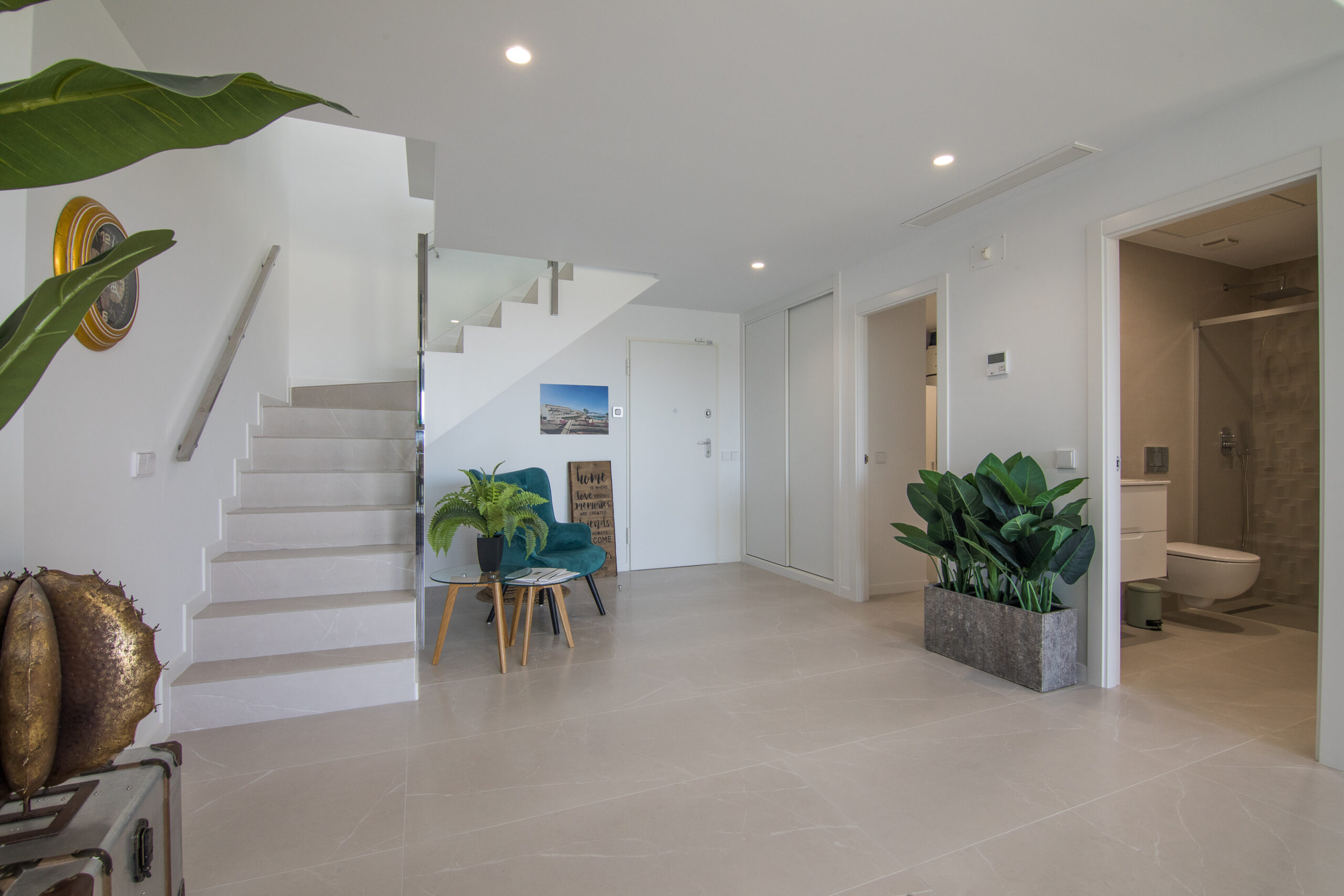 En la planta principal, la vivienda dispone de un amplio salón-comedor con cocina office integrada, moderna y totalmente equipada con electrodomésticos de alta gama. Desde esta estancia se accede a una espectacular terraza de aproximadamente 30 m², ideal para disfrutar del clima mediterráneo durante todo el año.