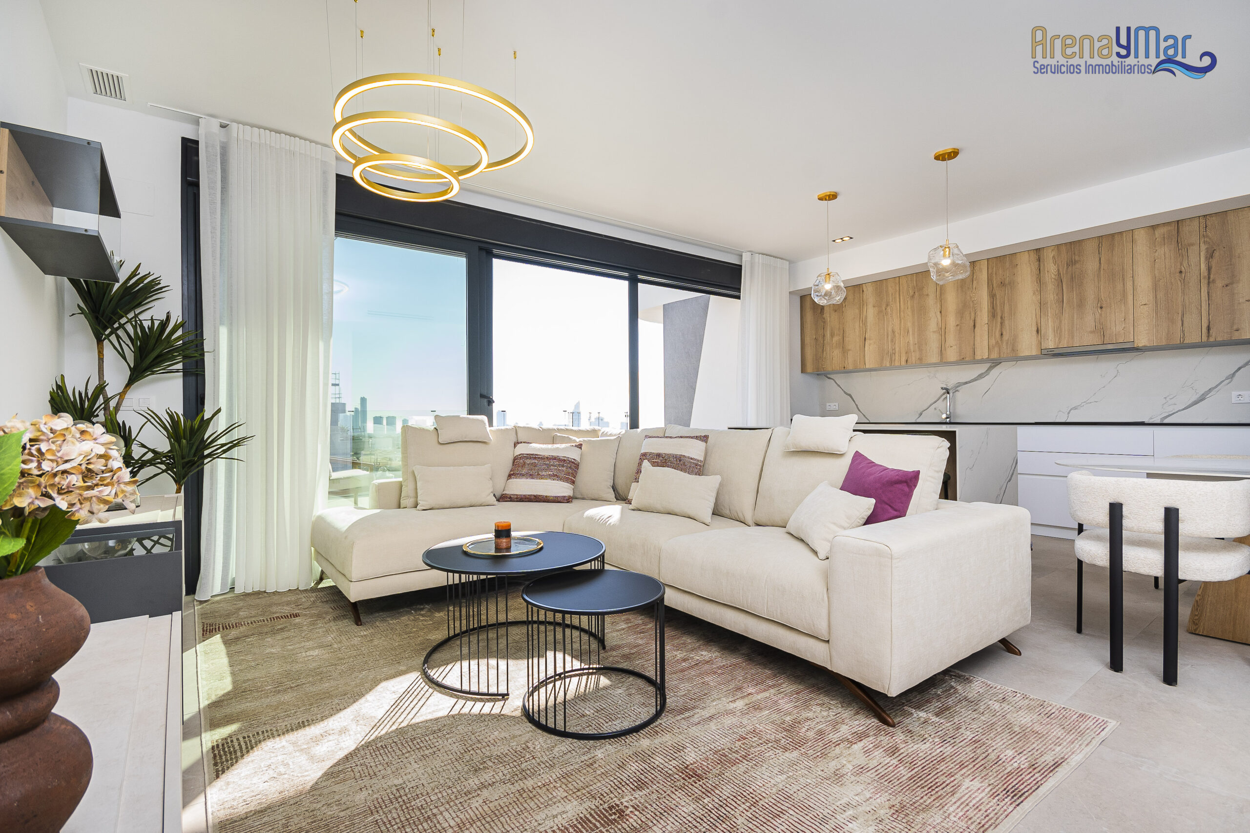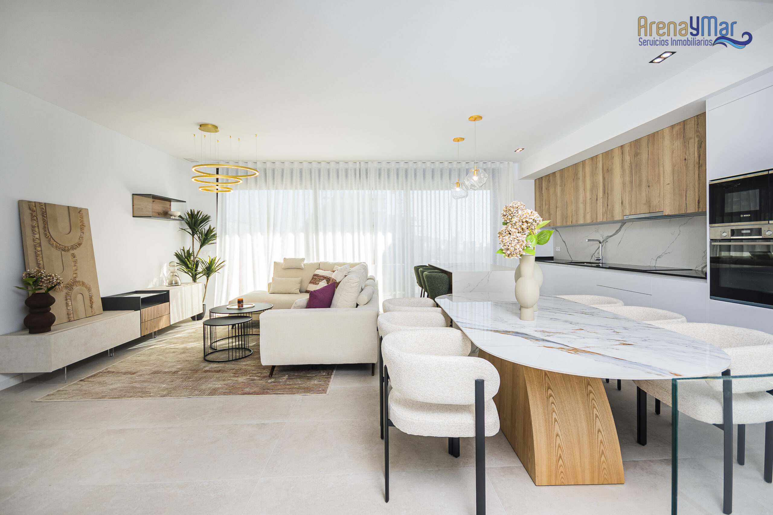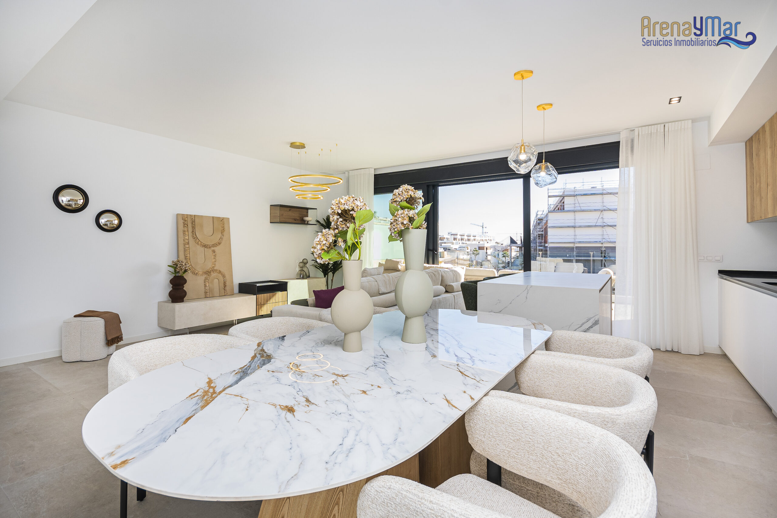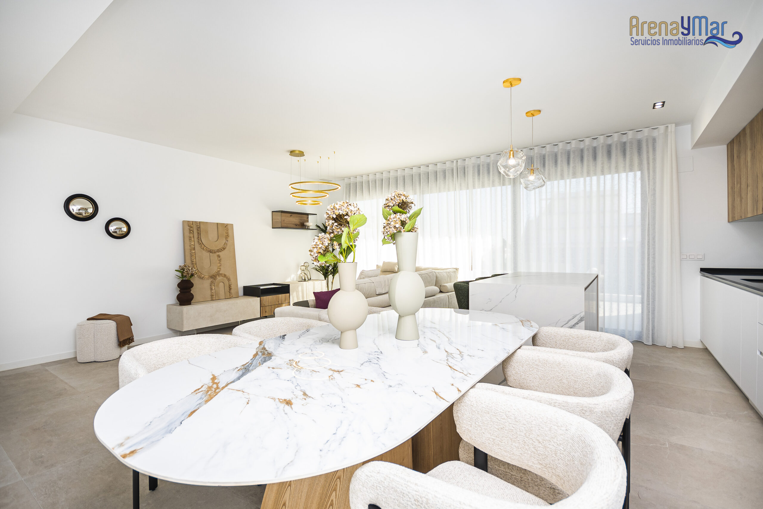 En la planta principal, la vivienda dispone de un amplio salón-comedor con cocina office integrada, moderna y totalmente equipada con electrodomésticos de alta gama. Desde esta estancia se accede a una espectacular terraza de aproximadamente 30 m², ideal para disfrutar del clima mediterráneo durante todo el año.