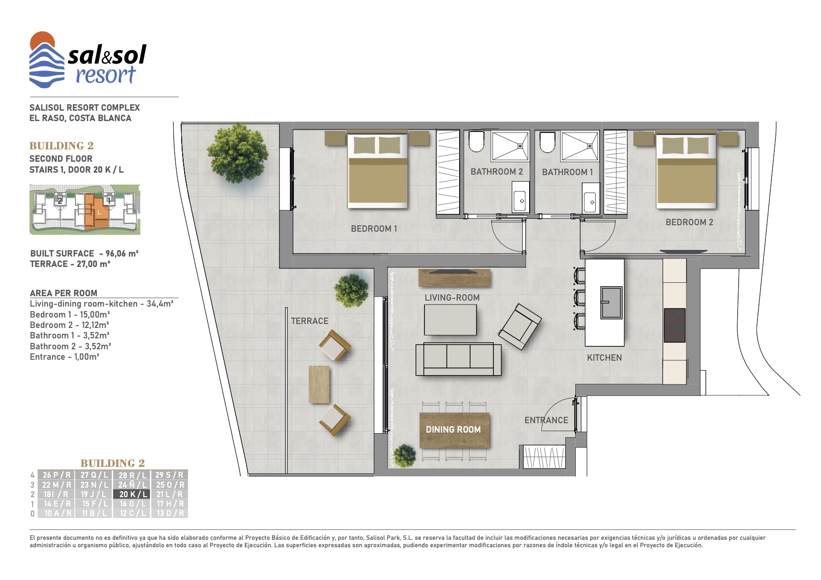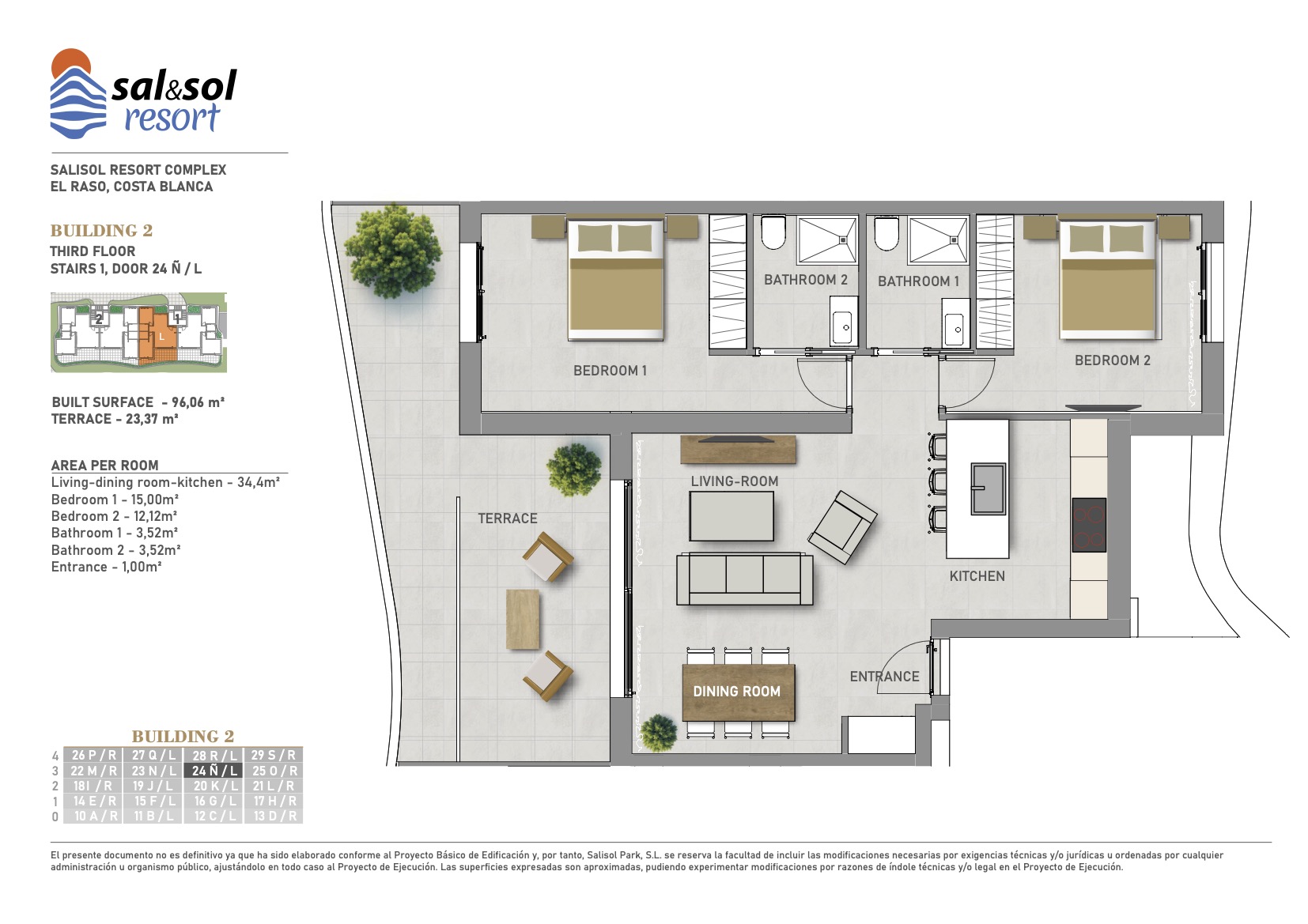 2 bedrooms – 2 bathrooms with private garden and terrace