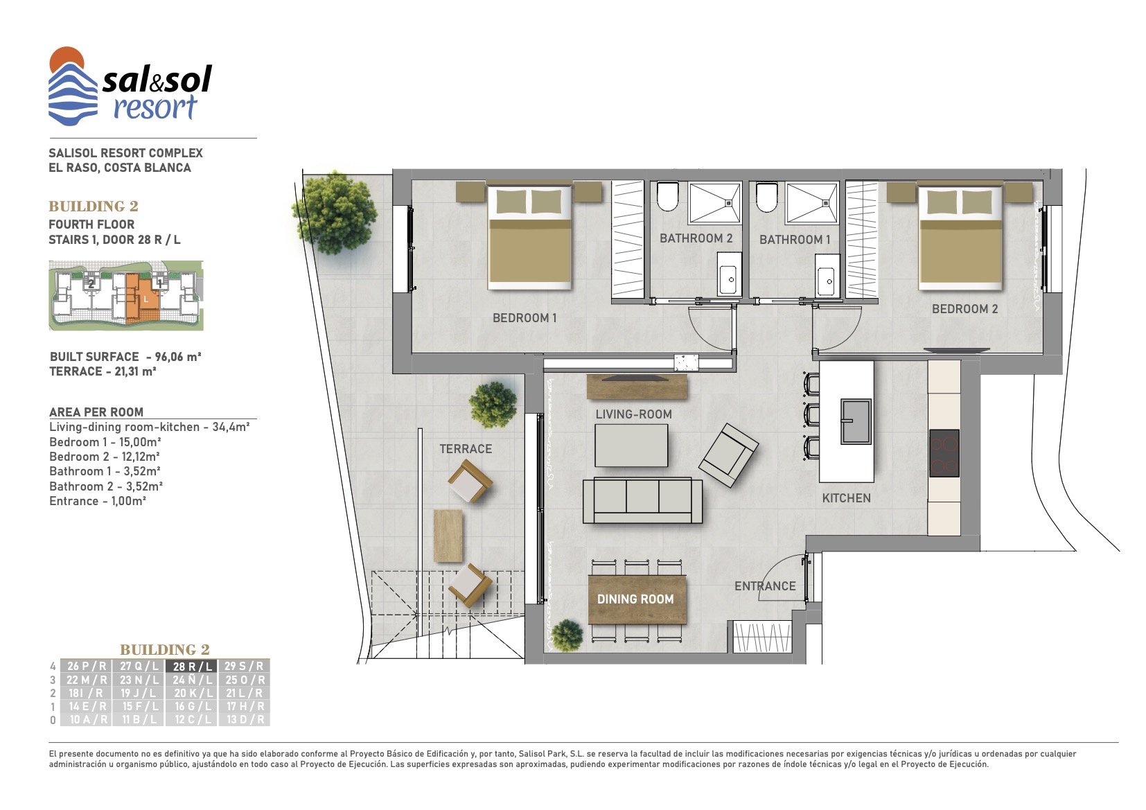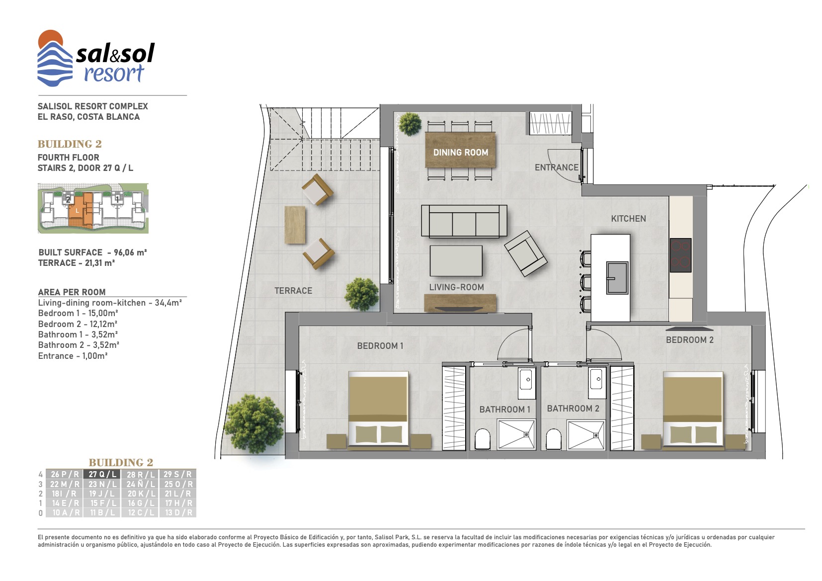 2 bedrooms – 2 bathrooms