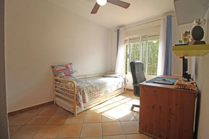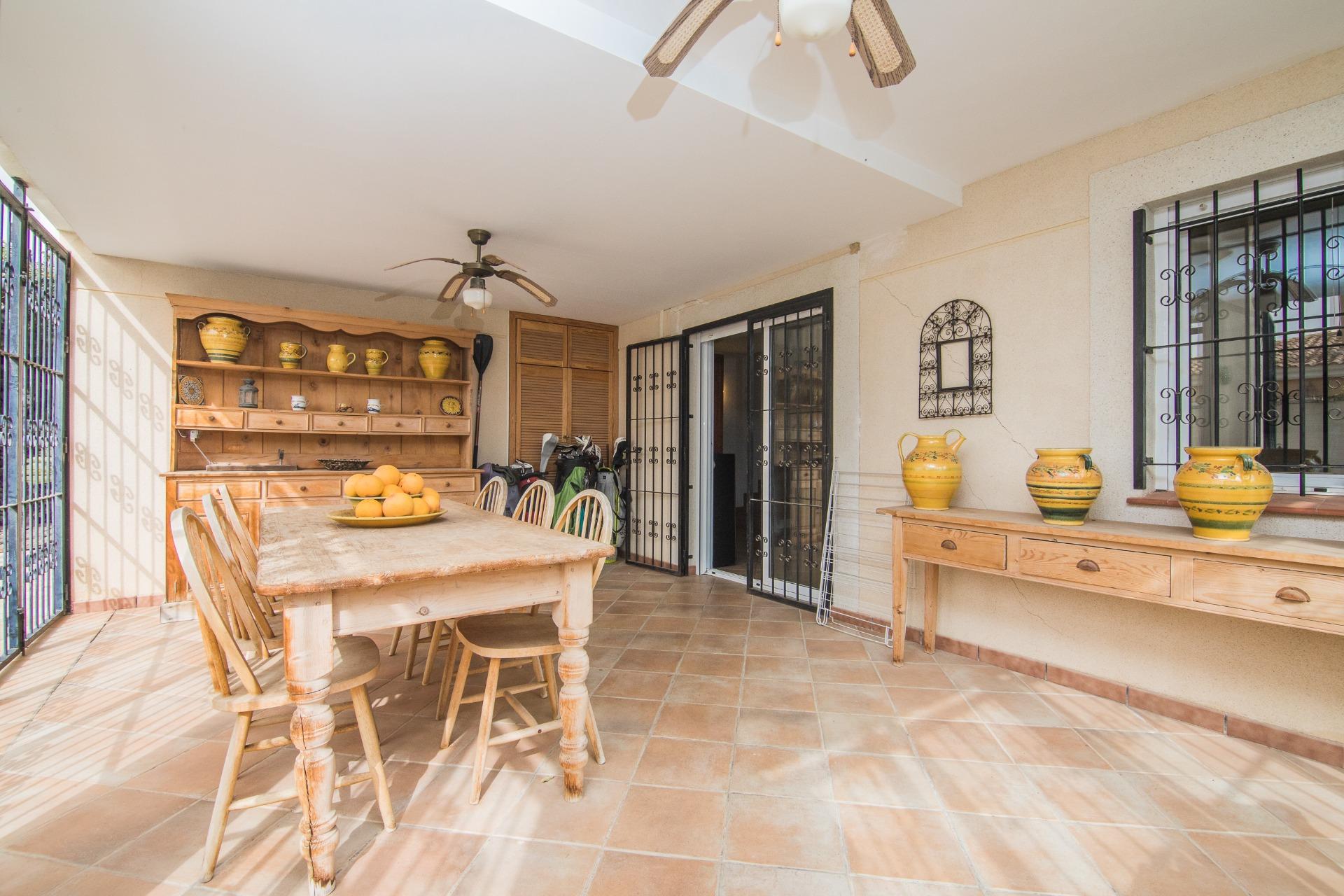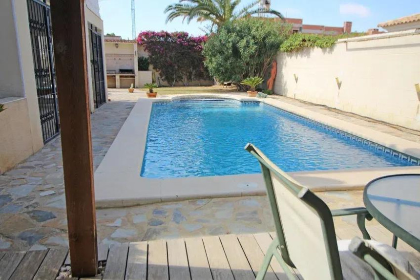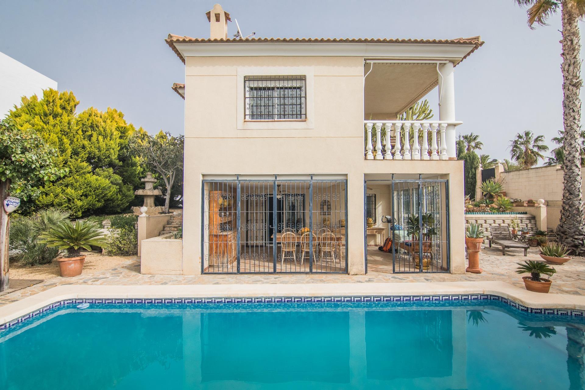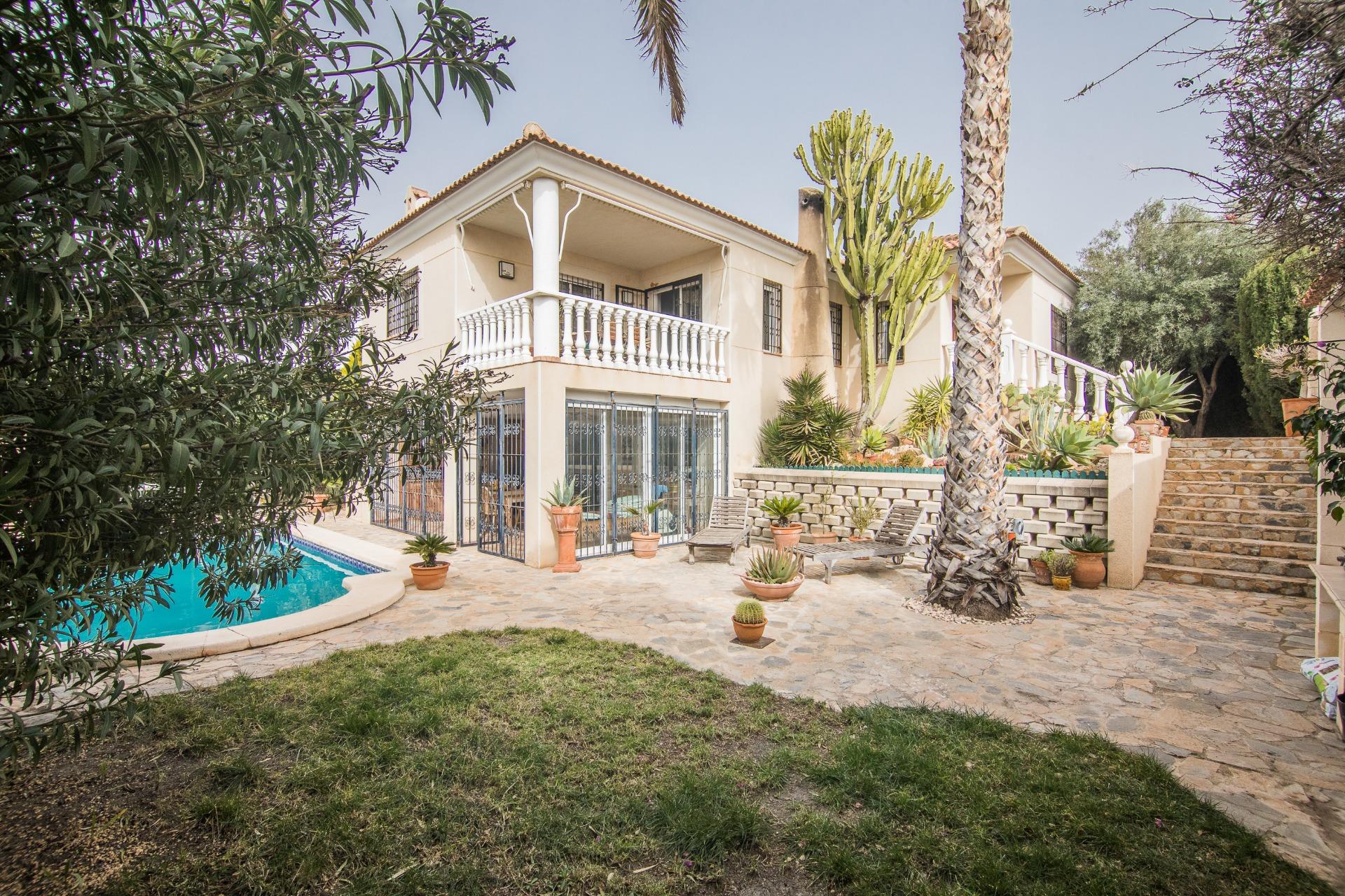 El exterior es, sin duda, uno de los grandes atractivos de la propiedad. La parcela alberga una magnífica piscina privada, rodeada de zonas ajardinadas con palmeras y vegetación mediterránea, creando un auténtico oasis de tranquilidad.