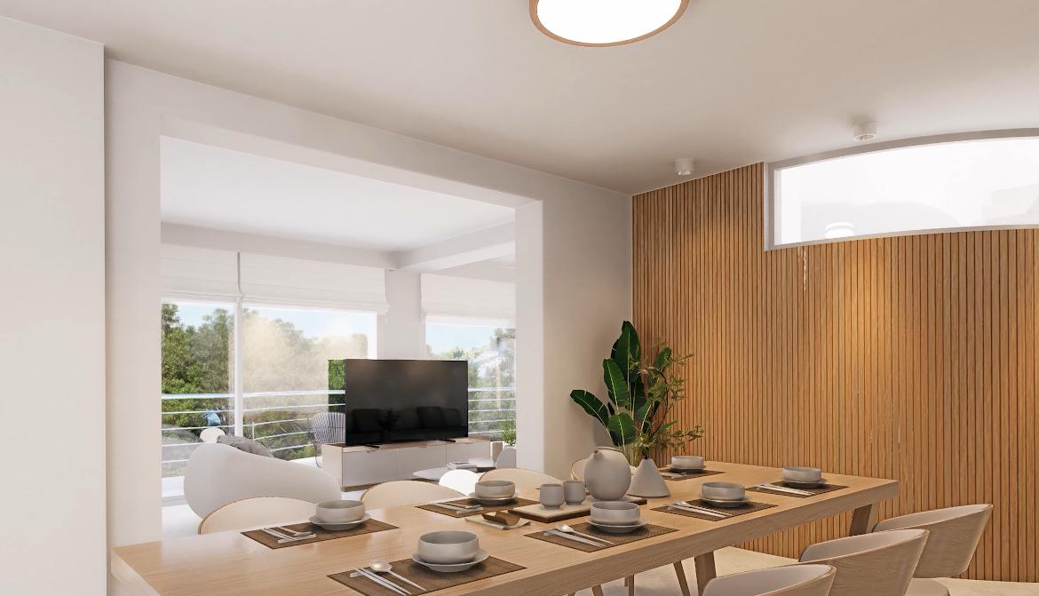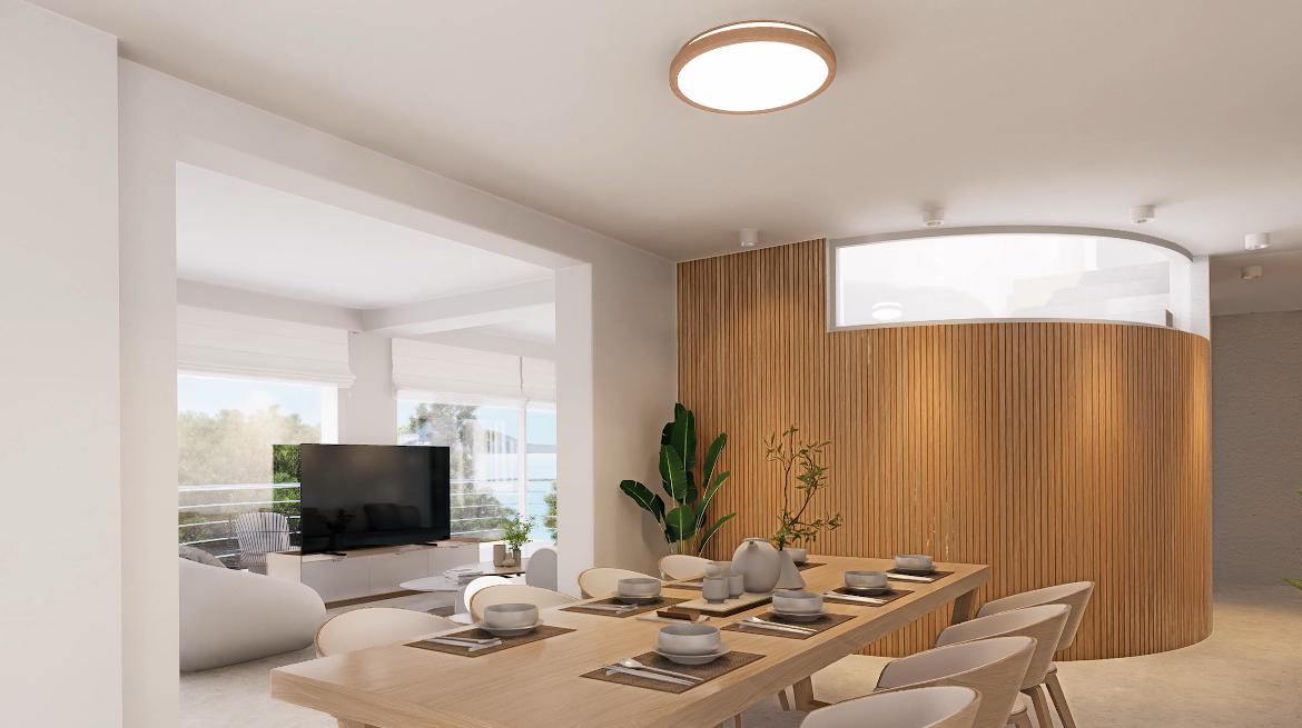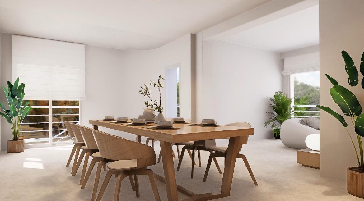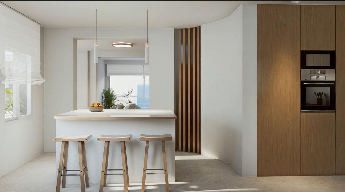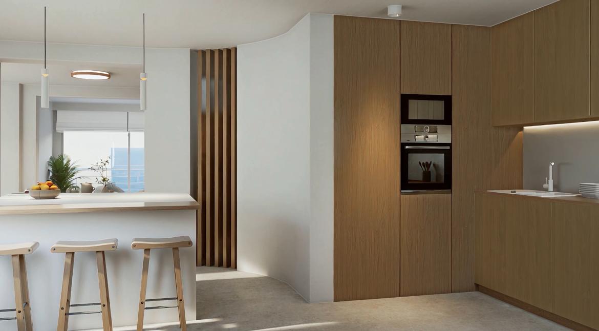 La zona de día se compone de un salón principal de grandes dimensiones, donde la luz entra a raudales a través de ventanales panorámicos que conectan directamente con el exterior, creando una sensación continua de libertad y armonía. La cocina independiente, totalmente equipada con electrodomésticos de alta gama, combina el diseño más actual con una funcionalidad impecable, ideal tanto para el uso diario como para ocasiones especiales.