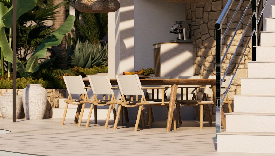 En el exterior, el verdadero paraíso se despliega: una terraza con pérgola de madera natural, una barbacoa cubierta que invita a disfrutar de largas veladas al aire libre y una extensa área ajardinada perfectamente cuidada. En el centro, una piscina de diseño con formas orgánicas y un baño exterior completo completan un entorno donde cada rincón ha sido pensado para el relax y el bienestar.
