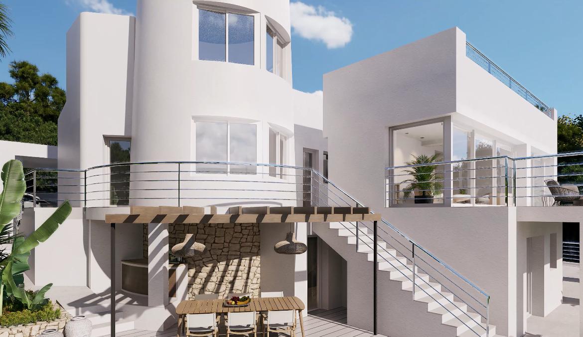 El diseño de la villa, distribuido en dos niveles, ha sido creado para ofrecer espacios amplios, fluidos y bañados en luz natural. Dispone de cuatro dormitorios en suite, cada uno de ellos con su propio carácter y elegancia, ofreciendo el máximo confort y privacidad. Además, cuenta con un baño general adicional, ideal para el uso de invitados, completando así una distribución funcional y pensada al detalle.